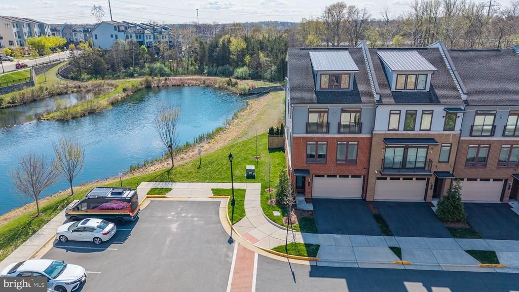 Fall in love with this distinctive four-level end-unit townhome on a premium lot backing to mature trees and a beautiful pond overlooking the Village at Leesburg. With nearly 4,000 finished square feet of luxurious living space, this townhome is actually larger than many single-family homes. The modern open floor plan features a stunning chef’s kitchen with white cabinetry, upgraded quartz countertops, designer lighting, a dramatic center island, modern exhaust hood, and upgraded stainless steel appliances, including a five-burner gas cooktop. A newly added dry bar and beverage center features open shelving and a wine cooler and beverage dispenser. The oversized dining area has two double sliding doors that open to a covered outdoor porch with expansive views of the village, perfect for relaxing or entertaining. The family room showcases custom built-in shelving and a floor-to-ceiling tiled gas fireplace. The atmosphere is relaxing, the vibe is modern and chic. The first upper level offers three spacious bedrooms with upgraded baths and ample closet space. The primary suite is a spa-like retreat featuring an expansive seamless glass shower with imported tile, soaking tub and two walk-in closets. The penthouse level is a rooftop oasis that includes a spacious bedroom, with a door for privacy, full bath, oversized loft and access to a private top-level balcony. This home is filled with high-end finishes including hardwood flooring throughout, a full oak staircase, upgraded lighting, and designer touches. The fully finished walkout lower level features an expanded recreation room and full bath, ideal for guests, a home gym, or private living space designed to maximize noise reduction. Walk out to your professionally designed and landscaped backyard that is both beautiful and functional. Architectural-scale pavers with natural stone infill. Platform decking surrounded by a mix of natural plantings and colors provides a serene outdoor setting in the Village at Leesburg. The community offers nearby shopping, top-notch restaurants, and a movie theatre. Walking trails, playgrounds, exercise stations, and lawn maintenance included in the HOA, making everyday living easy and enjoyable. This home offers the perfect blend of luxury, modern convenience, and scenic surroundings.